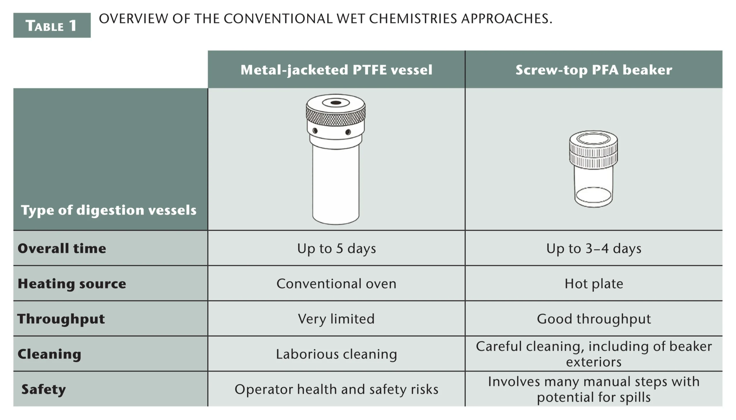 Whole rock digestion in academic laboratories has traditionally relied on two principal strategies: low-pressure hotblock digestion and high-pressure digestion in metal-jacketed polytetrafluoroethylene (PTFE) vessels.